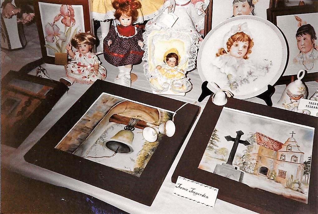 I have a huge vase she painted with a large parrot on it with many flowers. I use it in my living room all the time. I mostly put plastic flowers in it while decorating for the holidays, so my cat does not get to eating real flowers and tip it over accidently. I have several paintings she did of all kinds of birds and Grandpa made the frames for them. They are all hanging in my bedroom. A few pieces of china and a few paintings she did are down in the cabin at the property west of Trinidad.